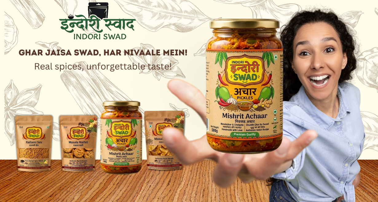 Bring home the bold and unforgettable flavors of Indore with Indori Swad Achar. Crafted using age-old recipes and premium-quality ingredients, this pickle captures the true essence of traditional Indian taste. Every jar is prepared with care, using fresh produce and a rich blend of hand-ground spices, ensuring a perfect balance of tanginess, spice, and aroma